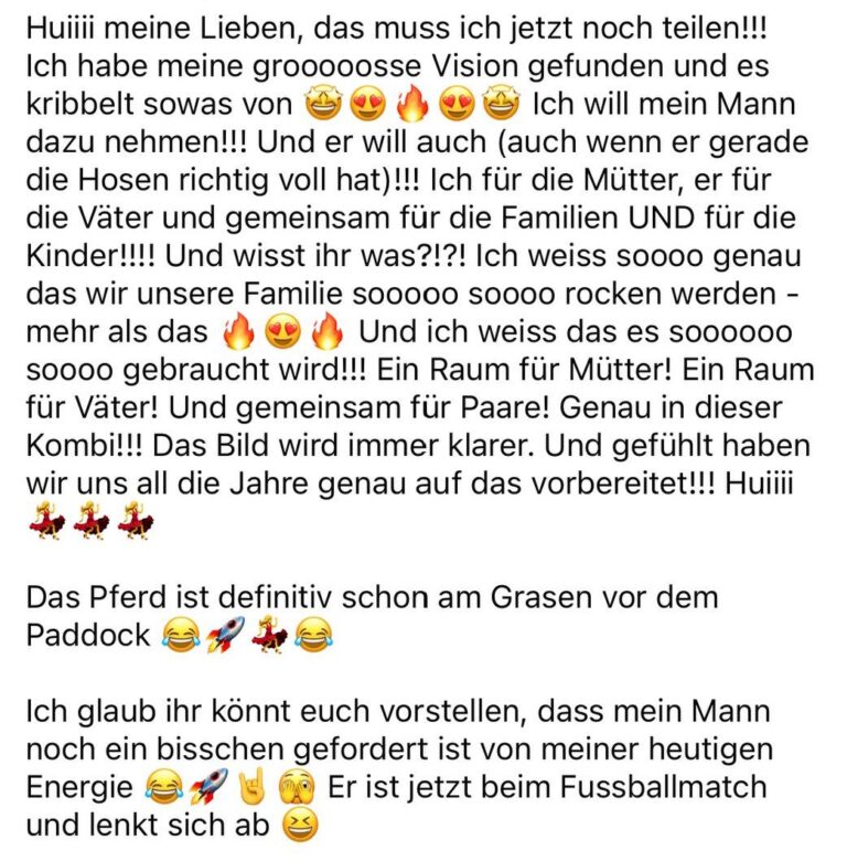 Anja hat mir mit ihrem Programm einen Raum eröffnet, in dem ich meiner eigenen Tiefe begegnen konnte. Mich Selbst und meine eigenen Saboteure wahrhaftig erkennen konnte. Zu verstehen, wo überall ich mir selbst noch im Weg stehe und wie ich das in Wandlung bringen kann. Sei es Beziehung, Elternschaft oder Business.